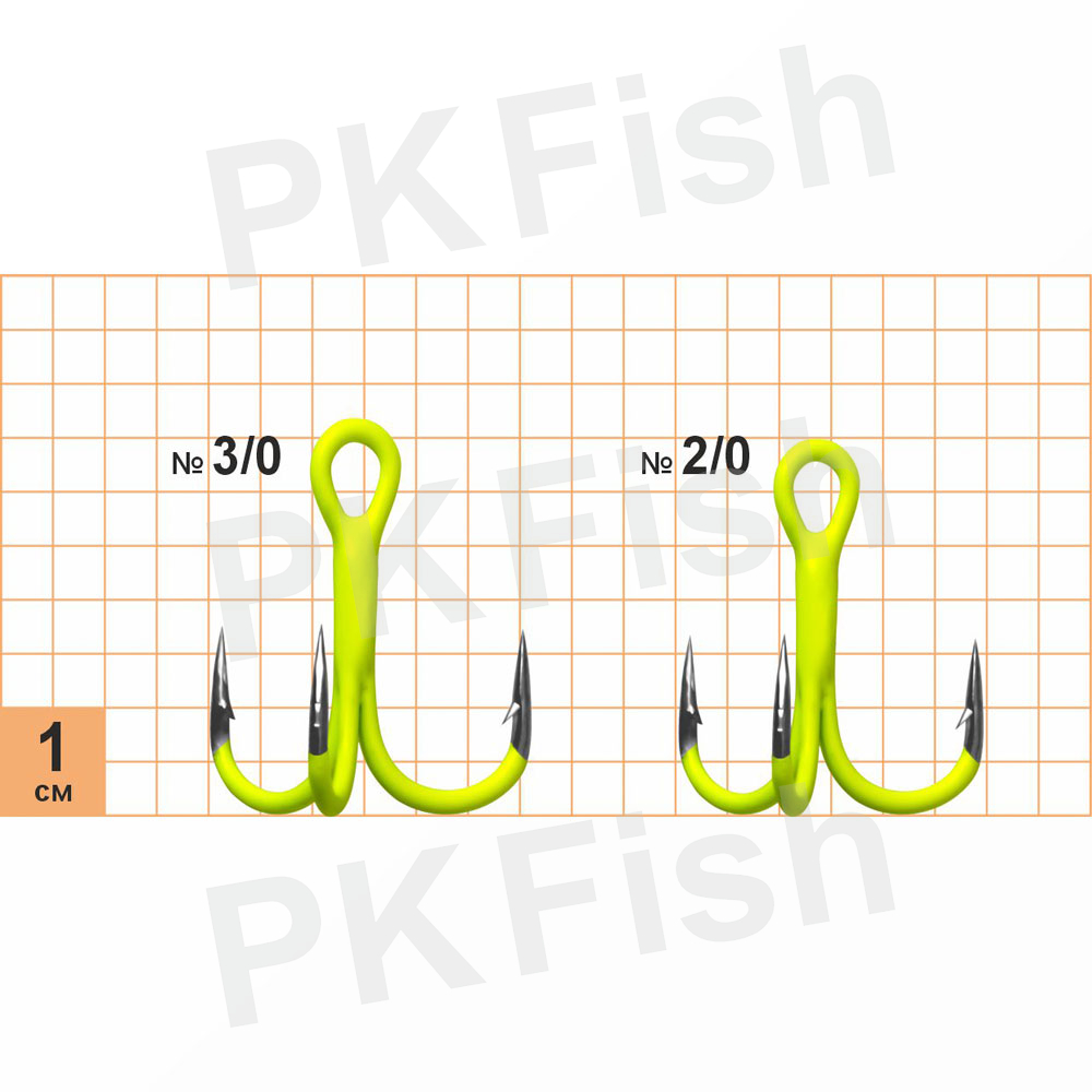 Класичний трійник ST-36 з полімерним покриттям, що відображає ультрафіолетове випромінювання і має власний колір яскравий шартрез. Має унікально гостре жало з заточкою The Best Needle Point. Ефект відображення максимально ефективний на глибинах до 7-ми метрів. Має високоякісне антикорозійне полімерне покриття SHuv.